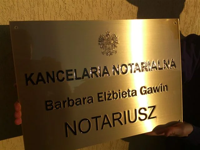 Wykonujemy również tablice dla kancelarii notarialnych, adwokackich, gmin, urzędów, szkół, wedle ustalonych z góry wytycznych i obowiązujących schematów.