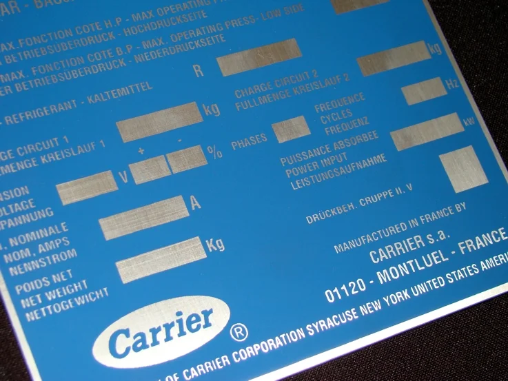 Tabliczki znamionowe to trwały element identyfikacyjny. Umieszczane są one na różnego rodzaju urządzeniach technicznych takich jak np. silniki i pompy, ale nie tylko. Przykładów zastosowania jest bardzo wiele – od czujników temperatury, przez skrzynie biegów, wózki widłowe, podesty, meleksy, maszyny rolnicze aż do wszelkiego rodzaju zbiorników ciśnieniowych, kotłów oraz urządzeń dźwigowych.