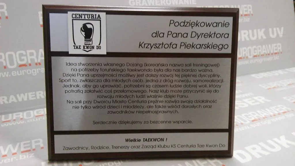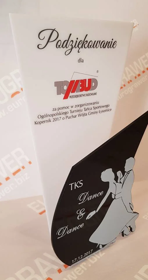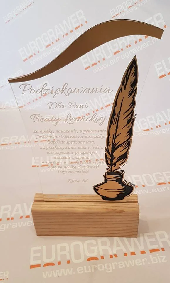 Trofea i podziękowania są miłym dodatkiem do okazji rodzinnych oraz wydarzeń sportowych. Nagrody w formie pucharów, statuetek lub dyplomów zawsze podnoszą prestiż i rangę wydarzenia. W naszej firmie staramy się tworzyć prace nie szablonowe. Łączymy różne techniki grawerowania, cięcia laserowego, druku UV, frezowania CNC tak aby stworzyć prace niepowtarzalne.